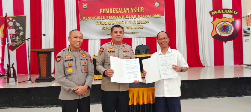 Sementara penandatanganan kerjasama dengan Sekolah Polisi Negara (SPN) Polda Maluku dilakukan di aula SPN Polda Maluku Kepala SPN Polda Maluku, Kombes Pol Romi Agusriansyah, S.I.K., disaksikan Karo SDM Polda Maluku, Kombes Pol Agus Nugroho, S.I.K., M.H.